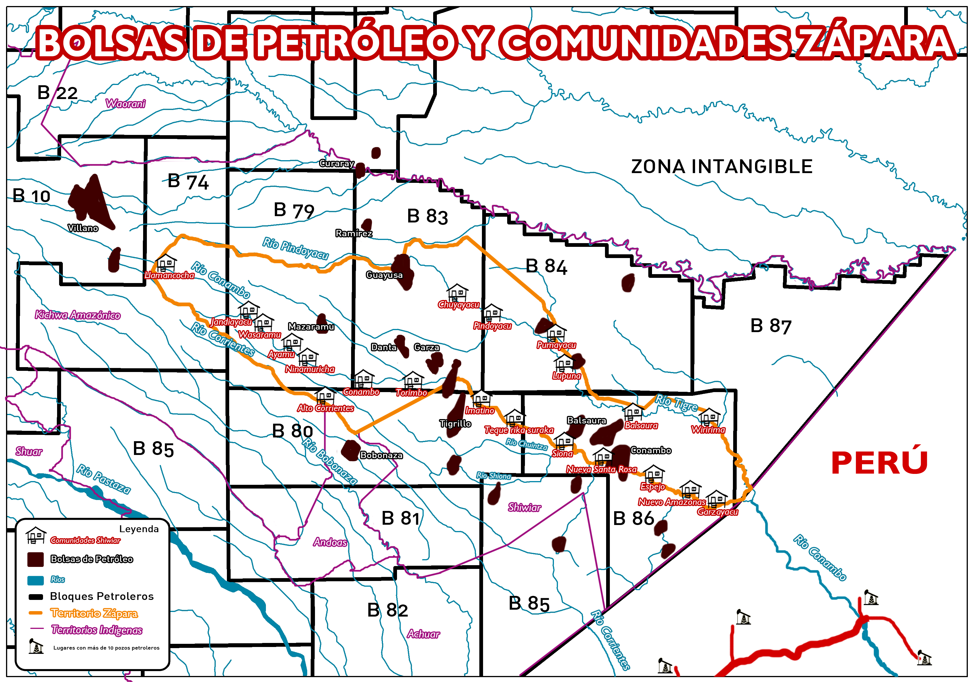 Los territorios Zápara y Shiwiar, en la amazonía ecuatoriana, se encuentran amenazados por la explotación petrolera. Ante un proceso inconsulto, el Estado ha puesto en subasta la totalidad de su territorio en la XI Ronda Petrolera. En la puja de esta macabra subasta, la empresa china Andes Petroleum Ecuador Ltd. consiguió la concesión de los bloques 79 y 83 que afectan a más de la mitad del territorio zápara y el bloque 86 está asignado a la empresa estatal Petroamazonas, que busca consorcio con alguna empresa extranjera, y pertenece al territorio zápara y shiwiar.