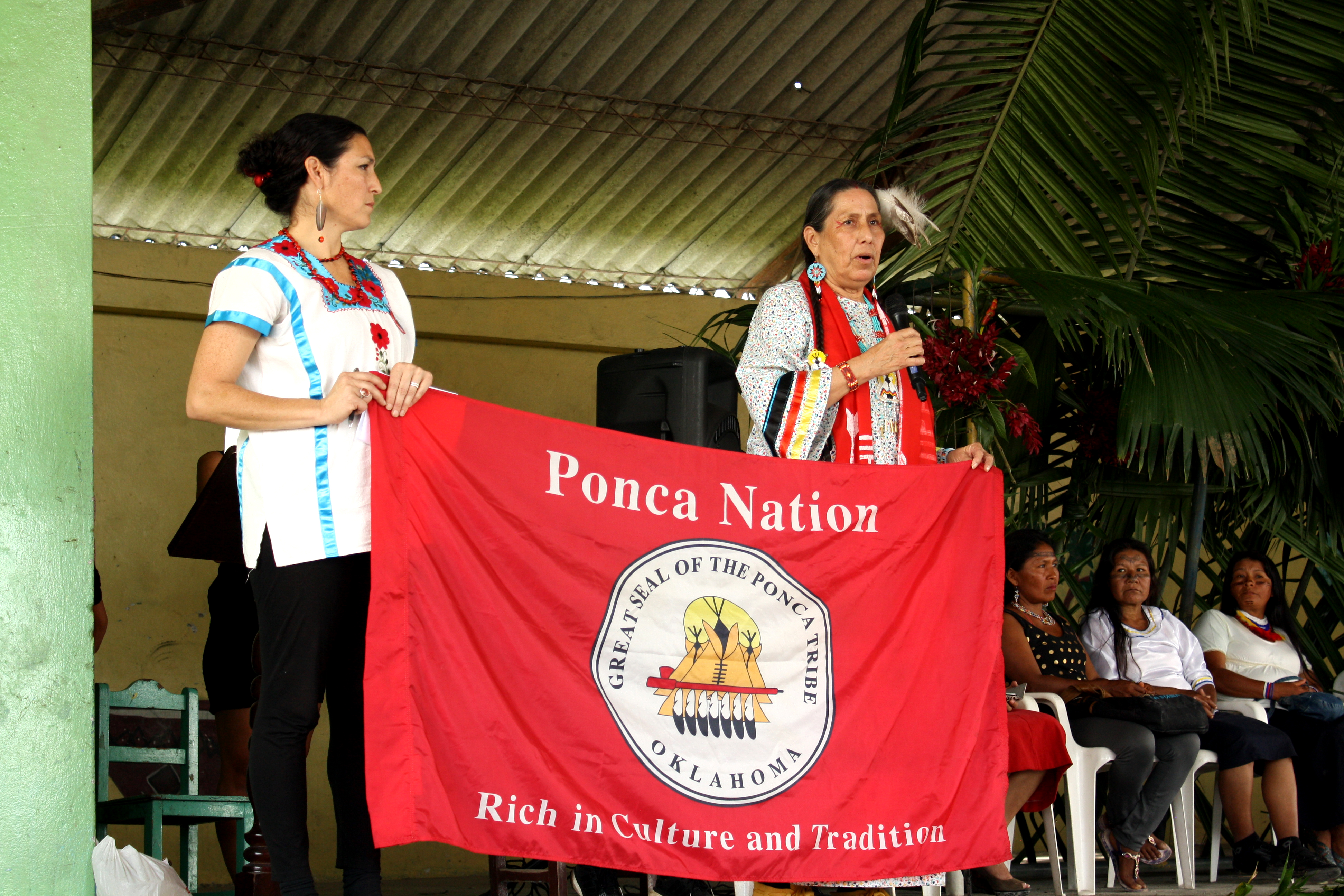 En este foro también estuvieron presentes mujeres indígenas de la nacionalidad Ponca, desde Oklahoma, Estados Unidos, solidarizadas con las mujeres amazónicas desde la experiencia propia de los impactos de actividades petroleras en sus territorios ancestrales. Exponían además cómo en los últimos años se ha sumado el fracking a sus territorios, ocasionando más de 3.000 temblores hasta el momento.