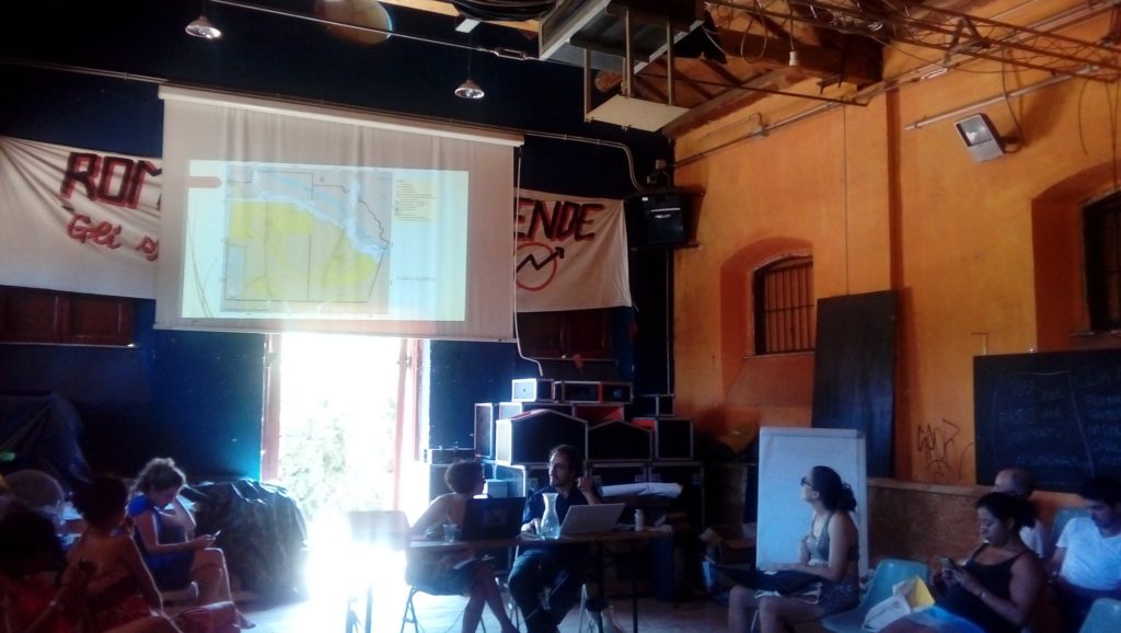 El taller sobre Geografía Crítica partió de una revisión de las principales herramientas cartográficas del ecologismo, la experiencia del colectivo generando aportes geográficos junto a Yasunidos o al pueblo shuar, así como las principales herramientas cartográficas al alcance de las organizaciones ecologistas.