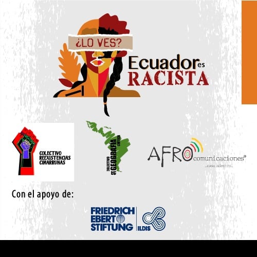 Las colectivas AfroComunicaciones Ec., Re-existencia Cimarruna y Geografía Crítica Ecuador, con el apoyo de Friedrich Ebert Stiftung Ecuador FES – ILDIS, motivadas por la profundización de las desigualdades durante la pandemia, nos hemos juntado para lanzar una campaña antirracista en base a nuestras investigaciones sobre distintos aspectos del racismo estructural en Ecuador. Síguenos en nuestras redes sociales y súmate a esta minga antirracista: difunde, comparte y comenta: